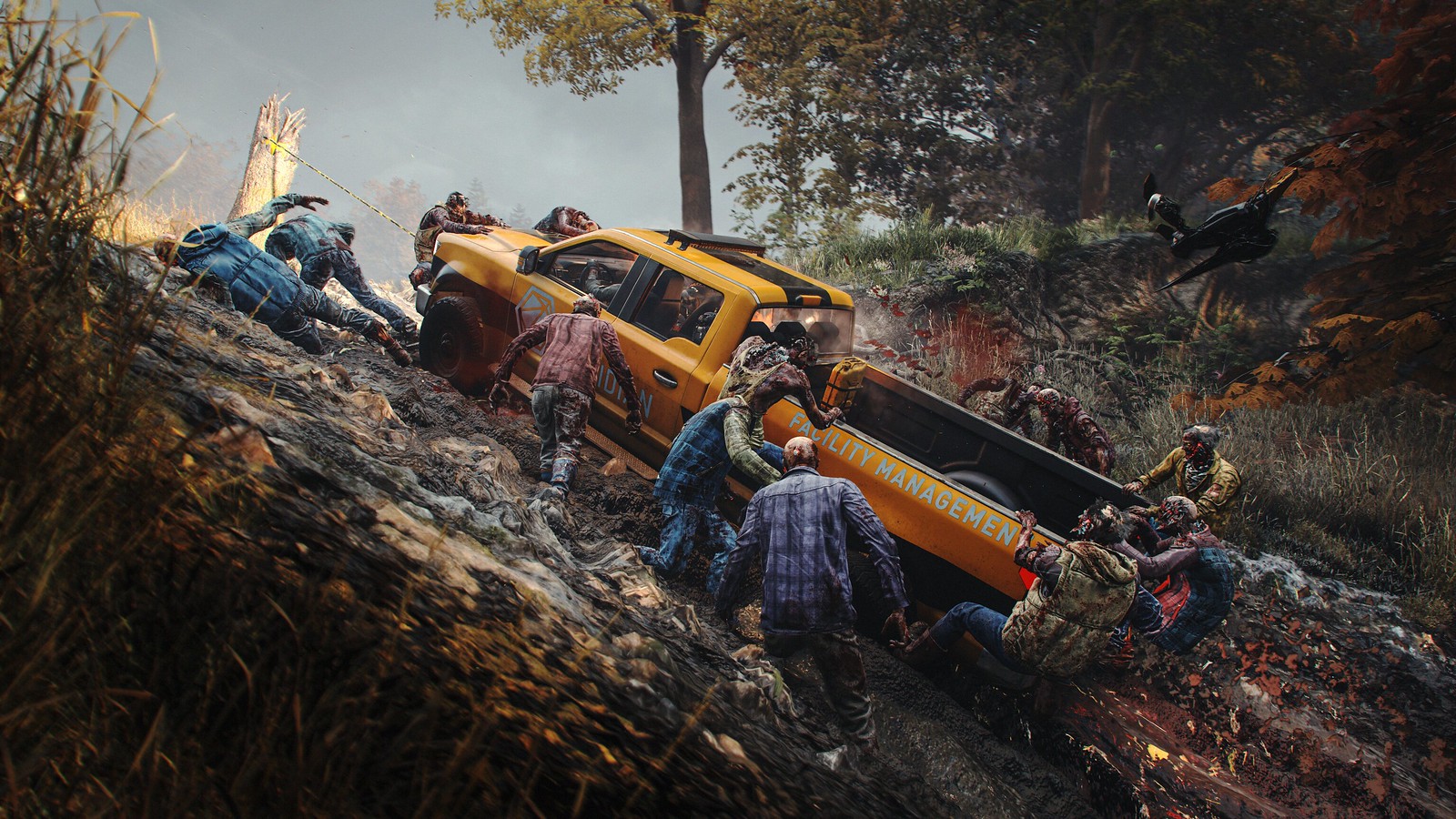 Alles begann mit einem Pitch von Matt Karch, dem CEO von Saber Interactive: World War Z trifft auf Mudrunner. Stellt euch riesige Horden von Feinden vor, die Spieler umschwärmen, die verschiedene Fahrzeuge benutzen müssen, um zu überleben. Wir fanden, dass das ein cooles Konzept war, das unseren Stärken bei Saber entgegenkam, also haben wir uns in die Recherche und Prototypentwicklung gestürzt. Das Ergebnis ist etwas, auf das wir wirklich stolz sind – eine einzigartige Mischung aus fahrzeugbasiertem Gameplay in offenen Umgebungen kombiniert mit actiongeladenen Kämpfen gegen riesige Feindhorden.